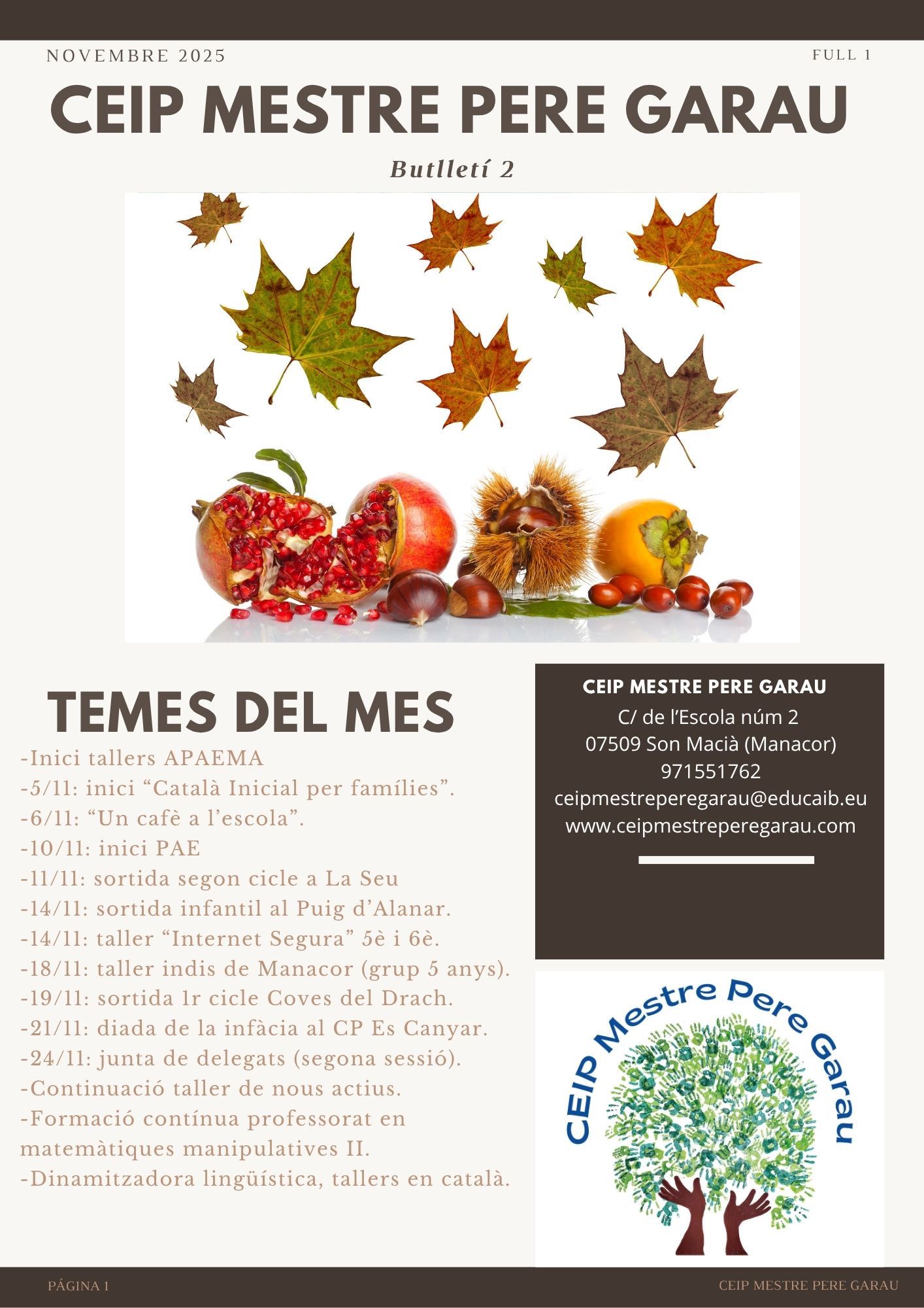 02/10/25Ja podeu descarregar el Butlletí amb les informacions referents al mes d’octubre. Butlletí octubre 2025
