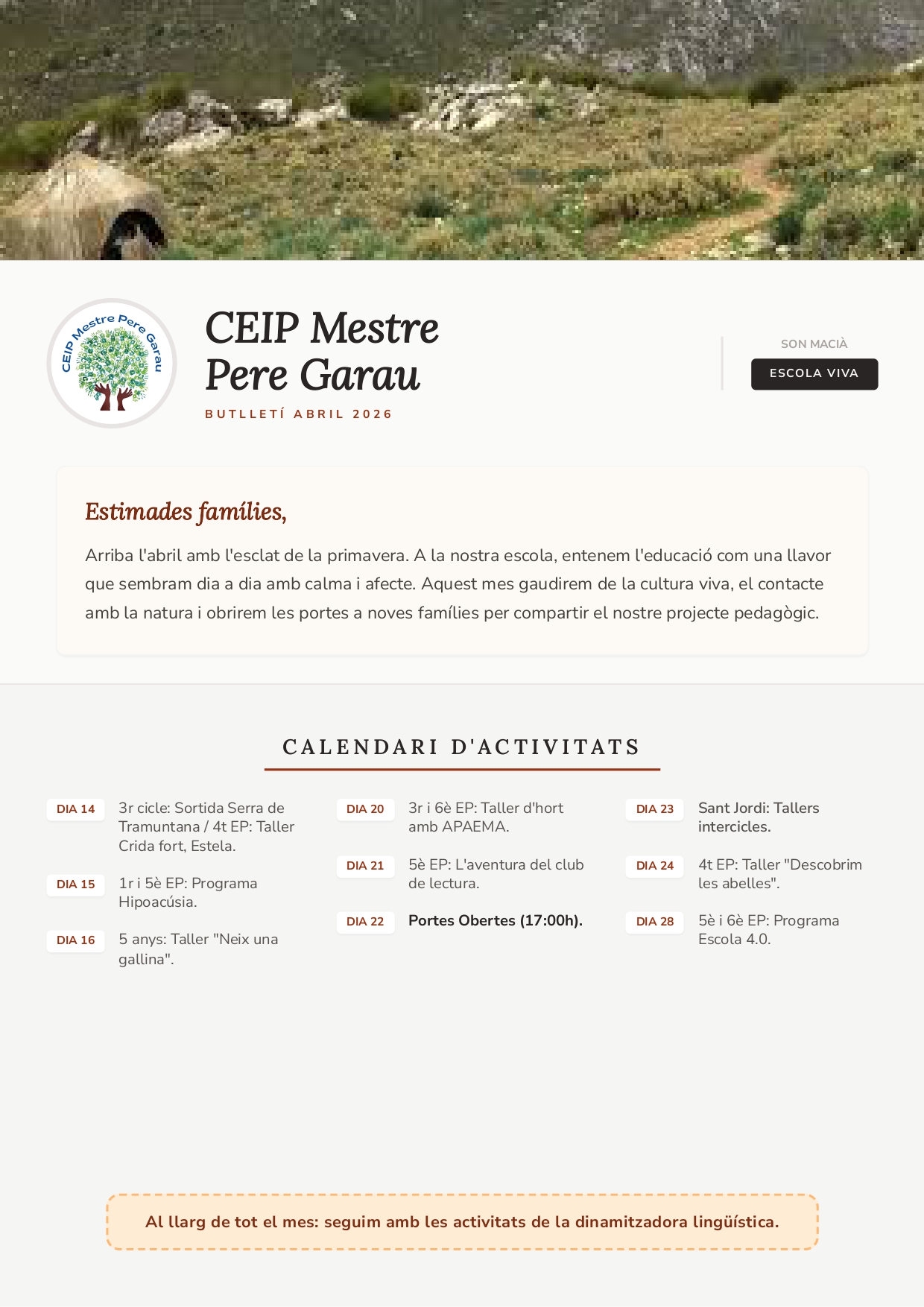 17/03/26Avui, 13 de març, la nostra comunitat educativa s’ha vestit de lila per celebrar el Dia Internacional de la Dona. Al camp de futbol de l’escola, hem dut a terme la VII Cursa Solidària, una jornada plena d’esport, música i compromís.